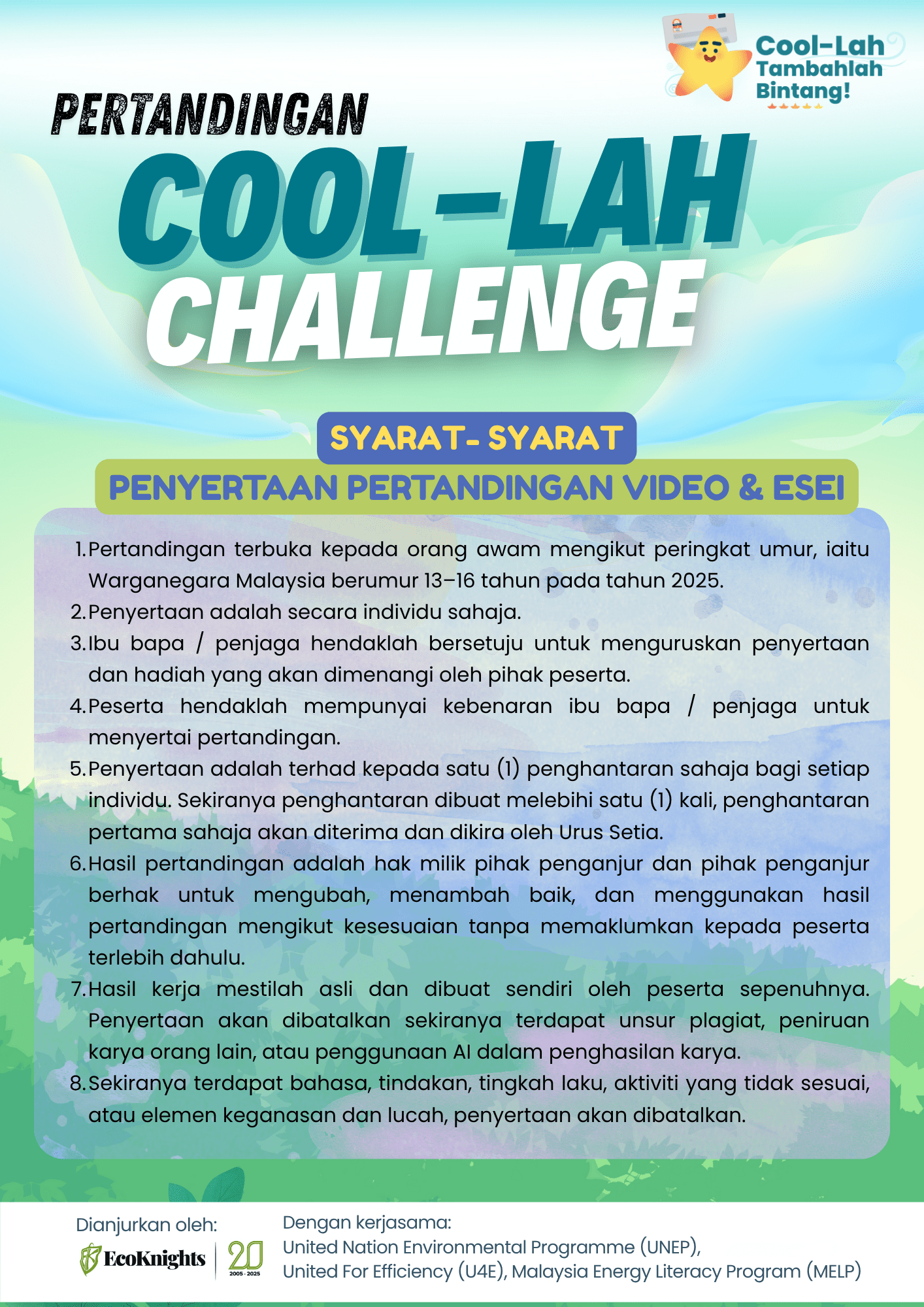 - Kempen ‘Cool Lah – Tambahlah Bintang!’ adalah sebuah kempen kolaborasi di antara EcoKnights dan United for Efficiency (U4E) di bawah United Nations Environment Programme (UNEP).