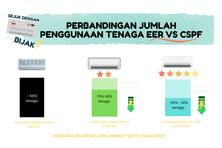 Mulai tahun 2026, Malaysia akan menggunakan ukuran baharu bagi menilai kecekapan tenaga penyaman udara — iaitu Cooling Seasonal Performance Factor (CSPF), menggantikan ukuran lama Energy Efficiency Ratio (EER).